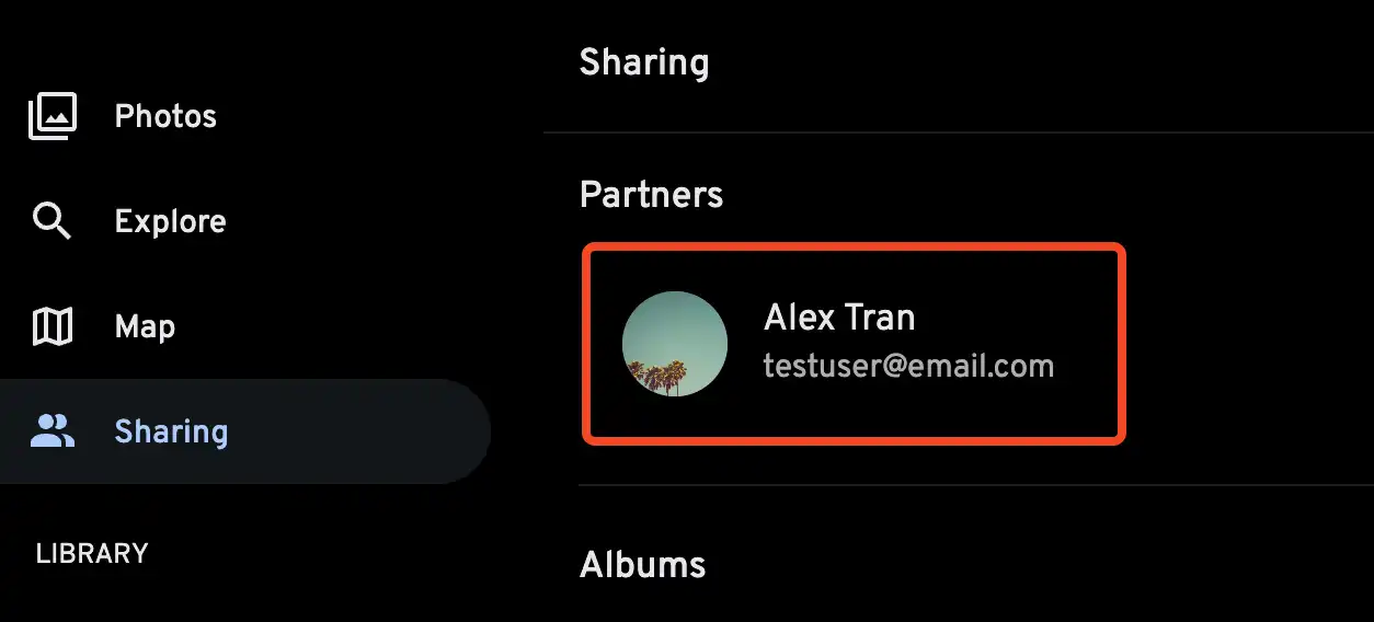 Partner shared photos can be displayed in the main timeline. This feature can be enabled on a per-partner basis and can be viewed and updated on both the web and mobile app.